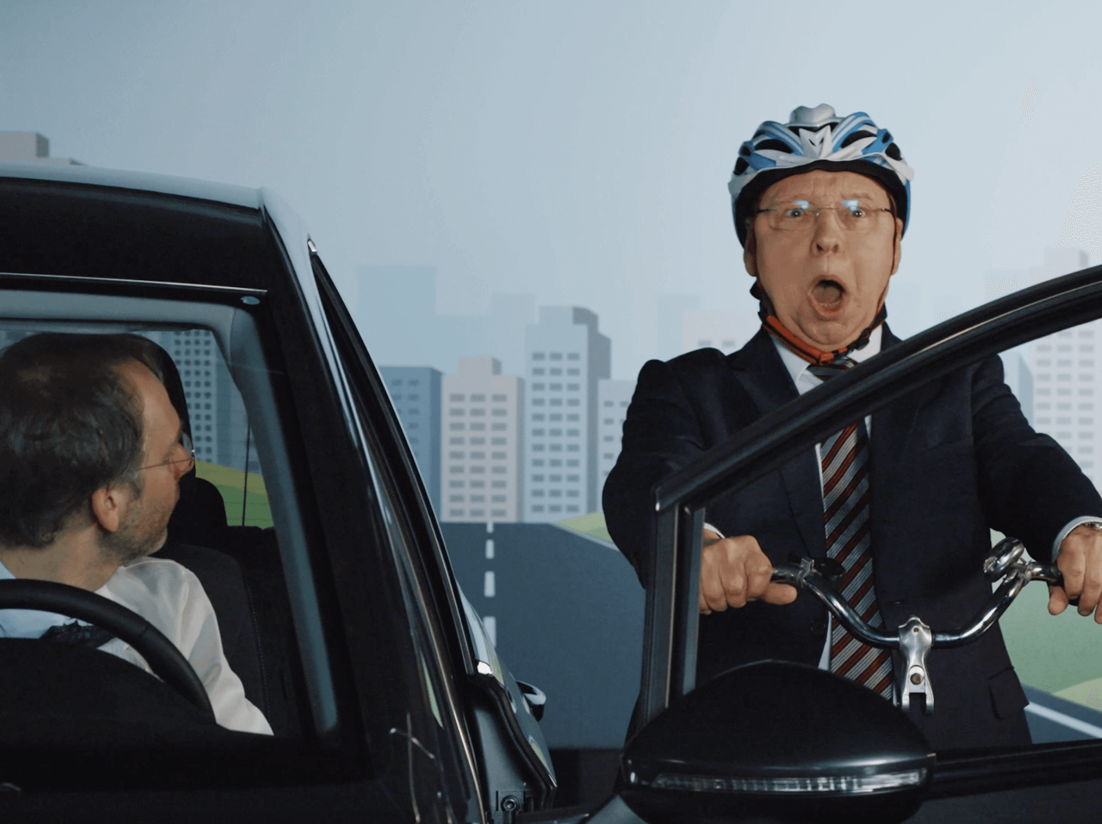 In der neuen Folge der beliebten Serie „Gernot Hassknecht: Der Experte für Verkehrssicherheit“ weist der aus der ZDF-„heute-show“ bekannte notorische Nörgler Gernot Hassknecht darauf hin, dass die Verantwortung für andere Verkehrsteilnehmer nicht mit dem Abziehen des Zündschlüssels endet. Deshalb sensibilisiert er die Autoinsassen dafür, beim Aussteigen auf Radfahrende zu achten und gibt ihnen einen hilfreichen Trick an die Hand: den Holländischen Griff. „Das ist nicht der Griff, mit dem man eine Portion Pommes und eine Frikandel gleichzeitig halten kann“, witzelt Hassknecht gewohnt ironisch, „sondern eine Art, die Tür zu öffnen, um Dooring-Unfälle zu vermeiden.“ Die Autotür wird hierbei vom Autofahrenden mit der rechten anstatt mit der linken Hand geöffnet. Dadurch erfolgt automatisch eine Drehung nach hinten, der Blick geht über die Schulter und von hinten nahende Radfahrende werden rechtzeitig gesehen. Für Beifahrer gilt übrigens dasselbe mit der linken Hand.